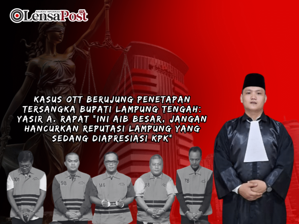 LENSAPOST.CO, Bandar Lampung — Dugaan korupsi yang mencuat melalui operasi tangkap tangan (OTT) dan kemudian berlanjut pada penetapan tersangka Bupati Lampung Tengah oleh KPK menjadi sorotan tajam Praktisi Hukum UIN Raden Intan Lampung, Yasir A. Rapat S.H. Ia menilai kejadian ini sebagai aib besar dan ancaman nyata terhadap reputasi Provinsi Lampung yang baru saja memperoleh pencapaian nasional dalam upaya pencegahan korupsi.