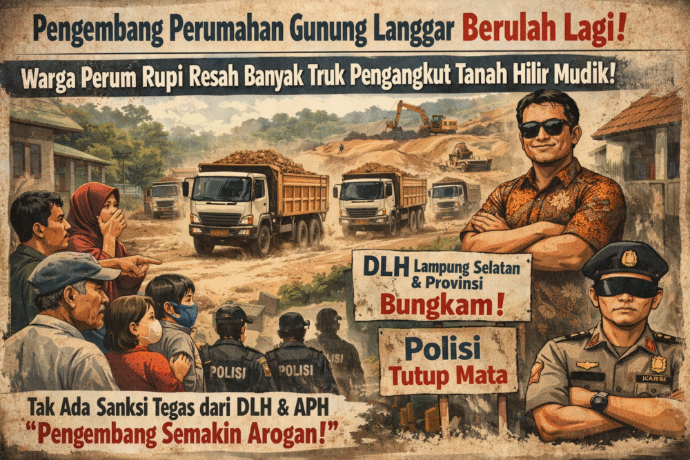 Bandar Lampung – Pengembang Perumahan Gunung Langgar kembali menuai protes dari warga sekitar Perumahan Rupi akibat aktivitas truk pengangkut tanah yang terus hilir mudik. Warga menilai pengembang semakin arogan karena minimnya sanksi tegas dari Dinas Lingkungan Hidup (DLH) Kabupaten Lampung Selatan maupun Provinsi, serta Aparat Penegak Hukum (APH), khususnya kepolisian.
