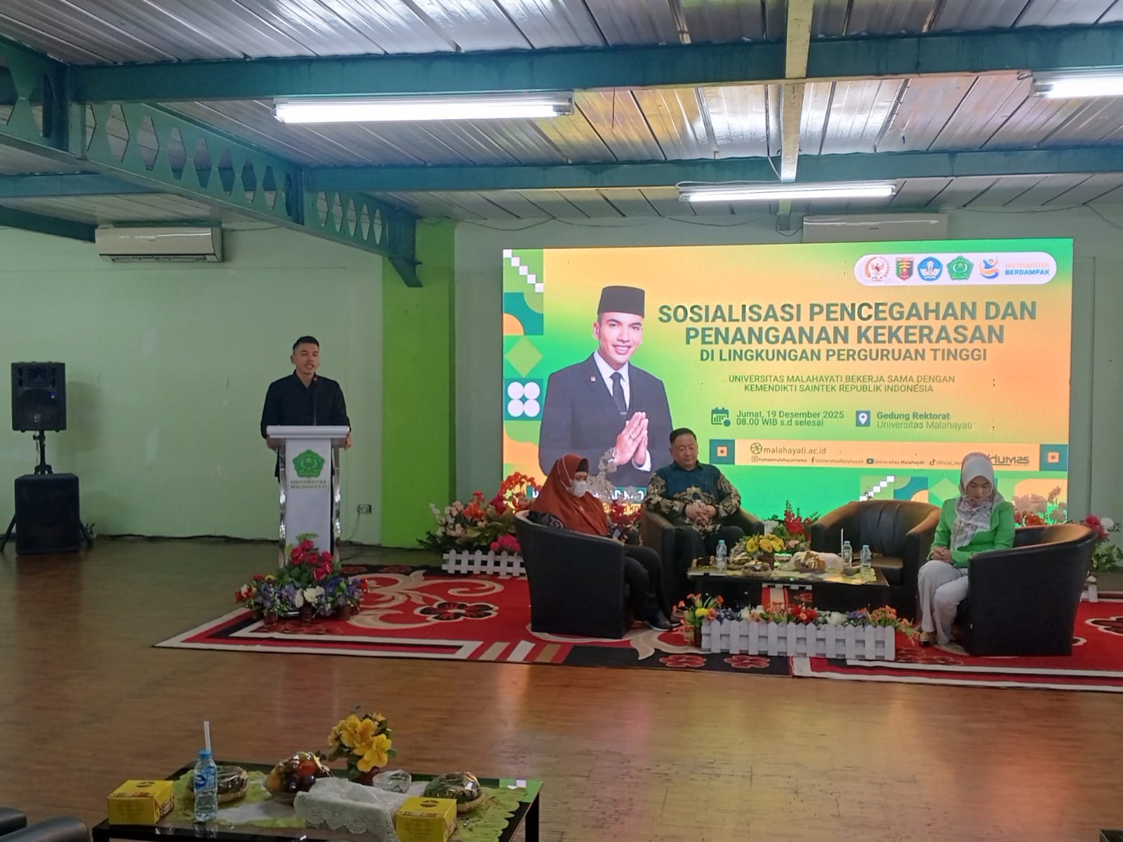 Kegiatan Sosialisasi Pencegahan dan Penanganan Kekerasan di Lingkungan Perguruan Tinggi yang digelar Komisi X DPR RI bersama Kementerian Pendidikan Tinggi, Sains dan Teknologi (Kemendikti Saintek) di Gedung Rektorat Universitas Malahayati.