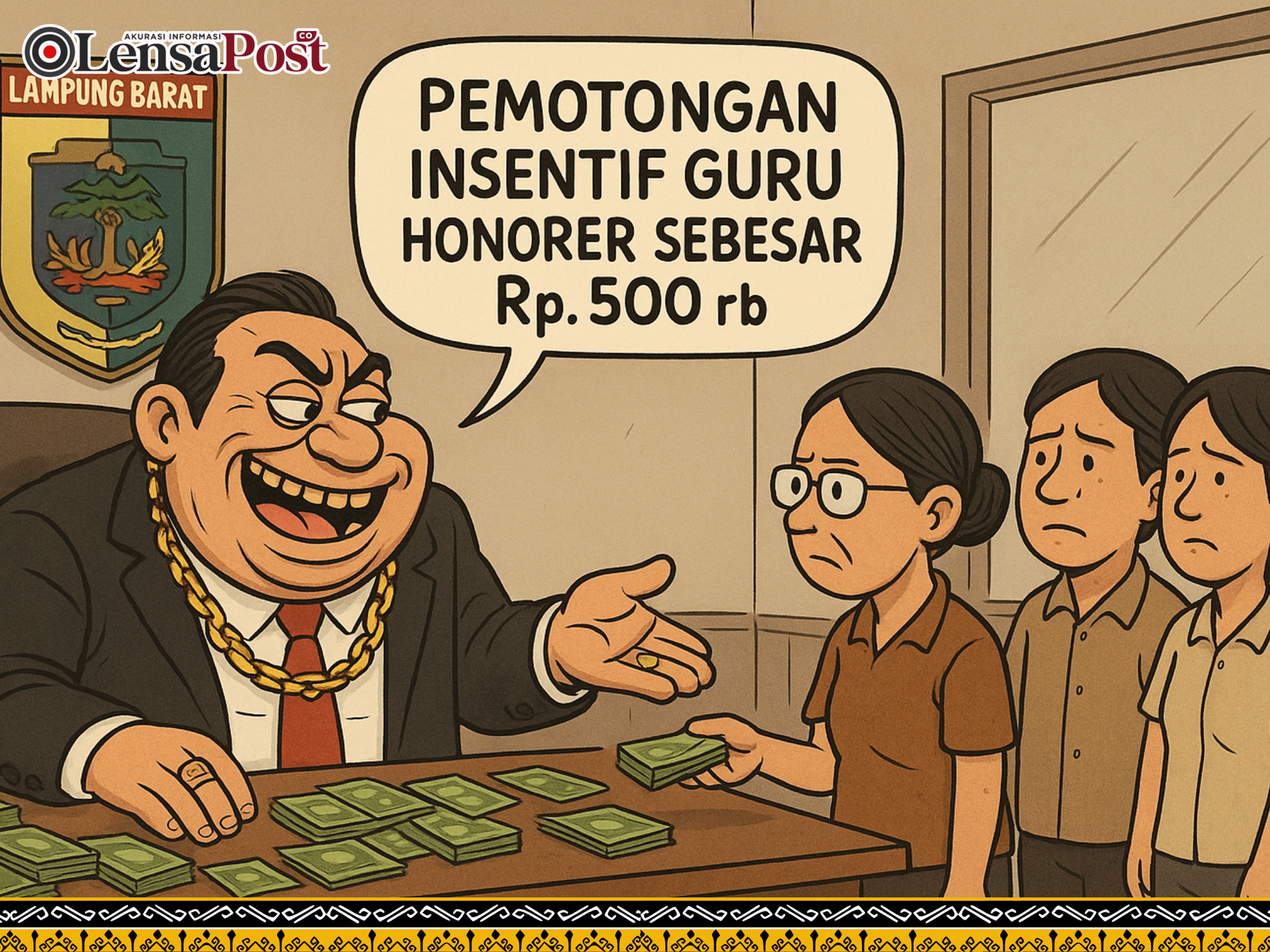 Lampung Barat — Dugaan pemotongan Insentif bagi guru dan tenaga honorer di Kabupaten Lampung Barat mencuat dan disinyalir menjadi ajang pungli oleh oknum tertentu untuk mencari keuntungan pribadi.