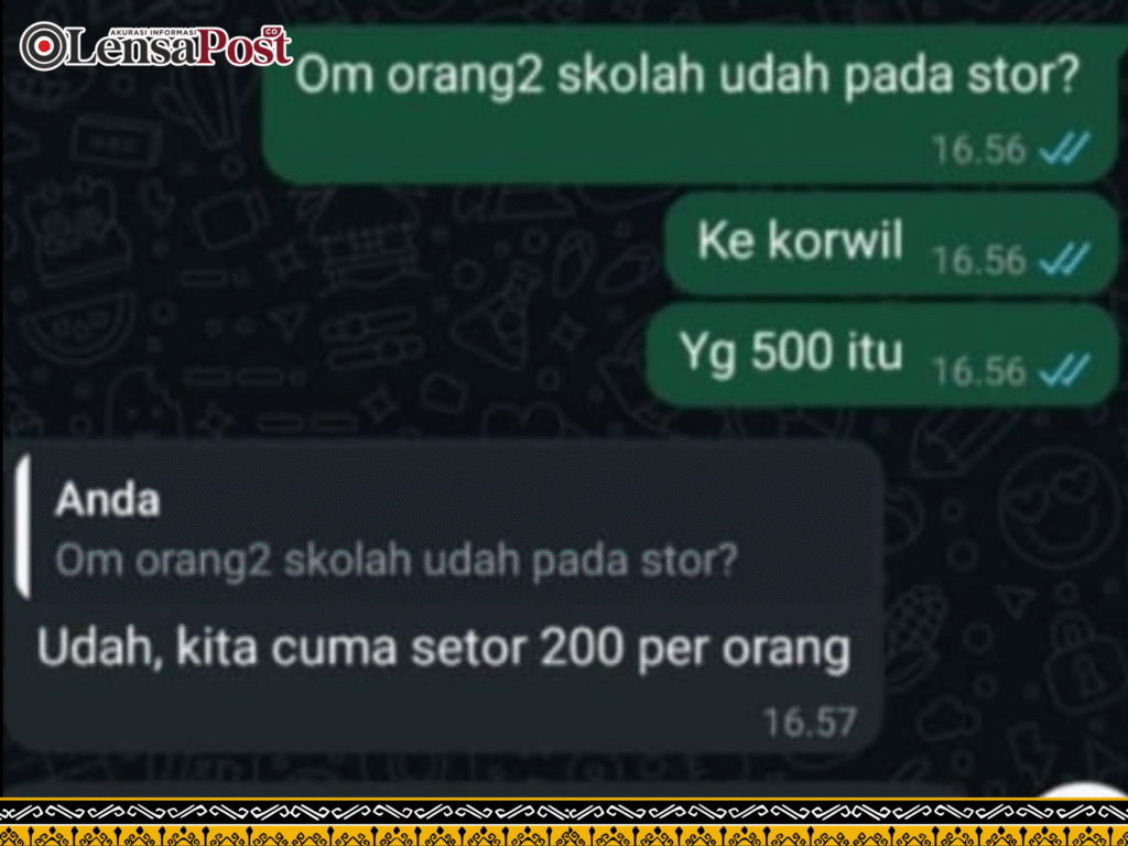Kesaksian ini diperkuat dengan pengakuan guru honorer lain yang menyebut beberapa sekolah memang sudah menyetorkan uang tersebut, meski nominalnya berbeda.